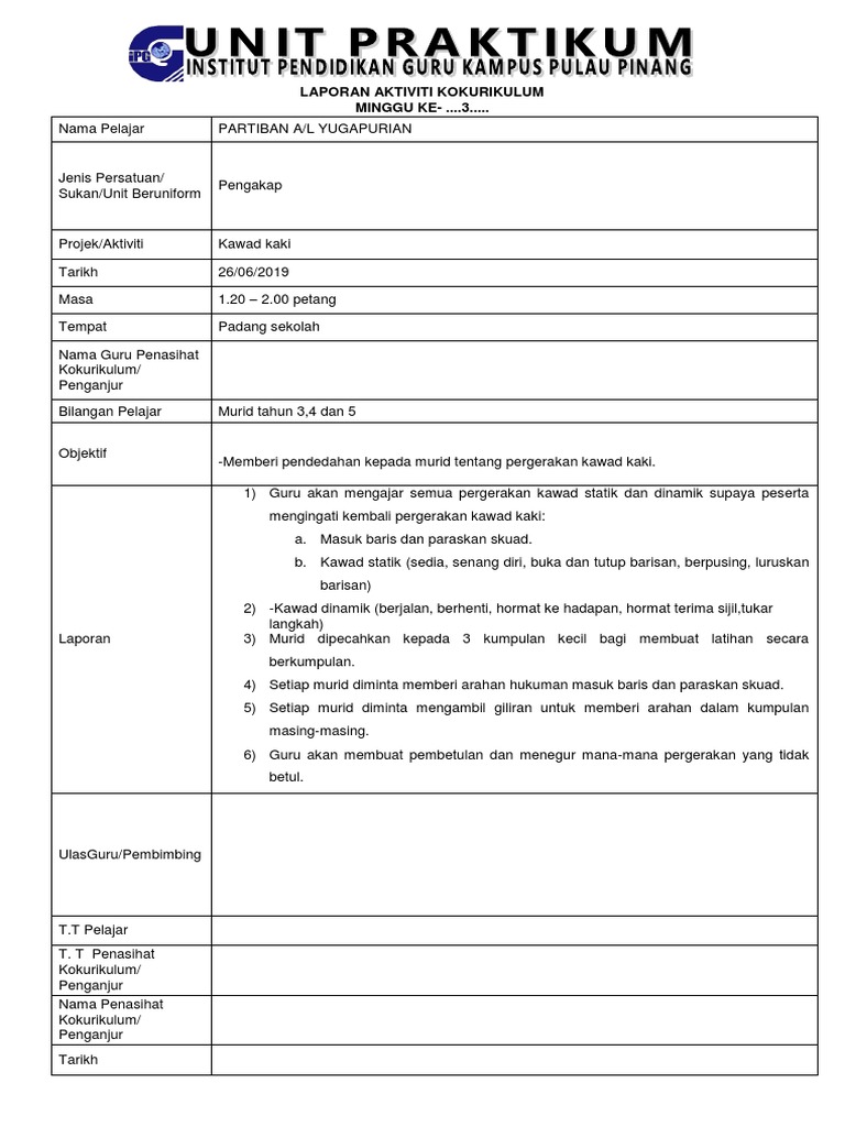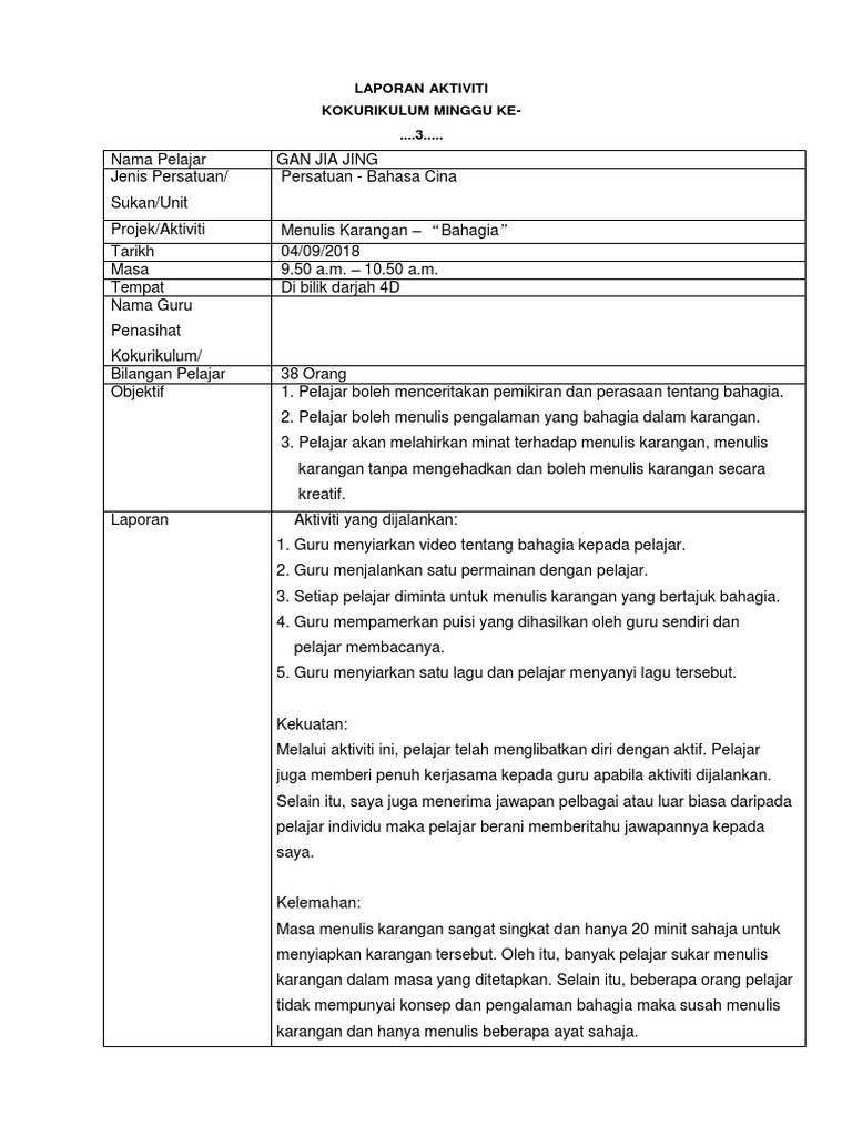 Laporan Aktiviti Kokurikulum Minggu Ke 3 Pdf