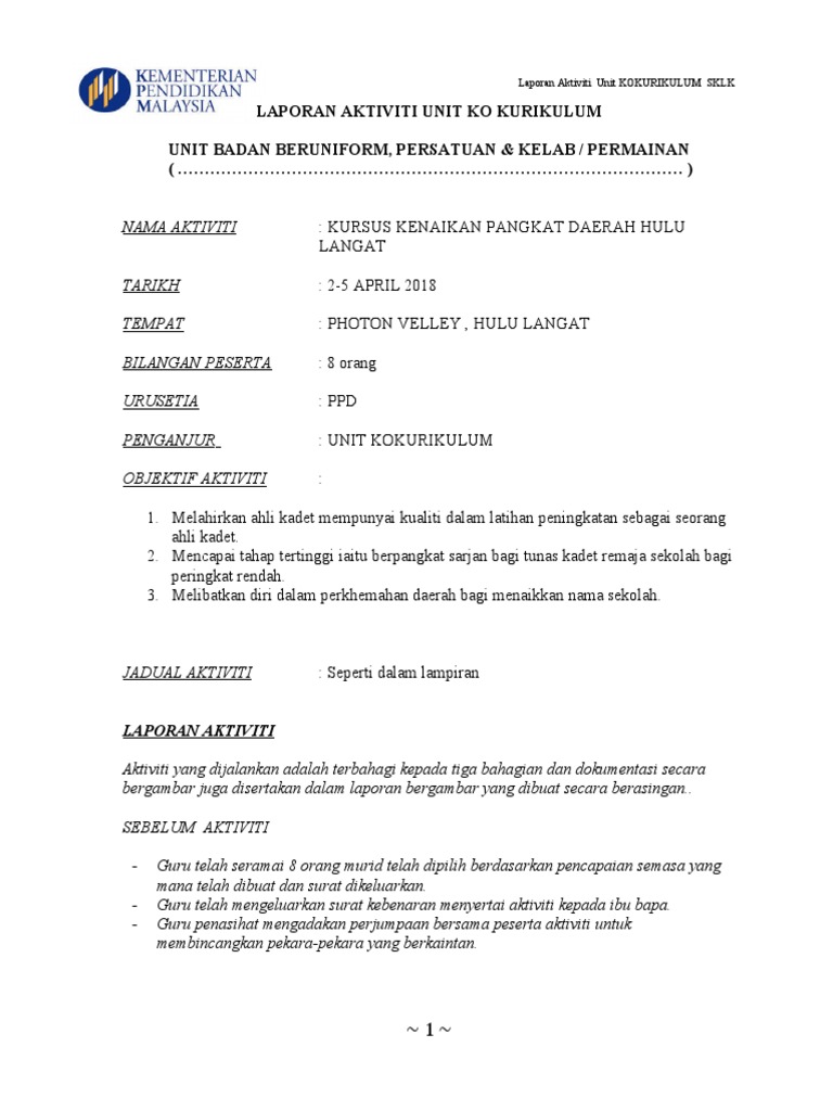Format Laporan Aktiviti Sukan Kokurikulum Pdf