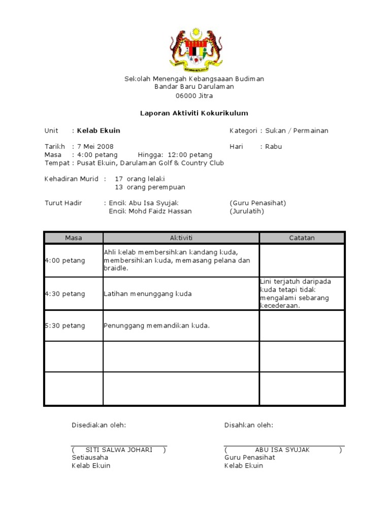Related posts to contoh karangan laporan aktiviti kokurikulum di sekolah contoh karangan laporan aktiviti kokurikulum di sekolah 2018 01 19t041200 0800 rating. Sila klik link di bawah untuk melihat contoh laporan aktiviti kokurikulum yang telah dijalankan di sekolah. Baca versi flipbook dari Buku Laporan Aktiviti Kokurikulum 2020.
