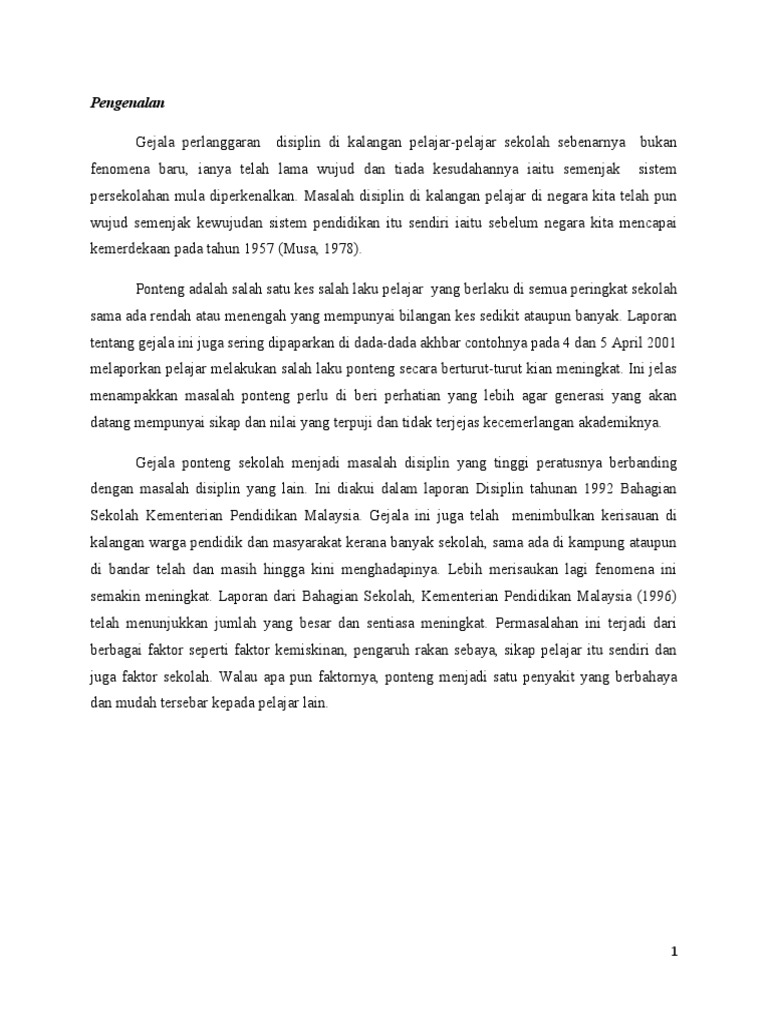 Masalah Ponteng Dikalangan Murid Sekolah Pdf