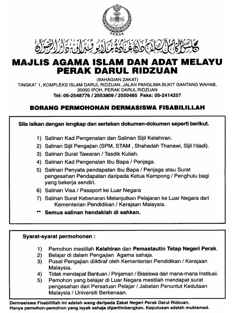 Web Berita baik untuk anak Perak anda boleh mohon Dermasiswa Yayasan Perak bagi setiap pelajar yang telah memasuki dan menyambung pelajaran di Institusi. Web c Pemohon dan ibu atau bapa yang lahir di Negeri Perak tetapi beralamat di luar Negeri Perak dan telah bermastautin di Negeri Perak lebih dari 10 tahun. Borang ini hanya layak diisi oleh pemohon sedia ada yang telah berdaftar dengan Pejabat Atase Pendidikan Perak.